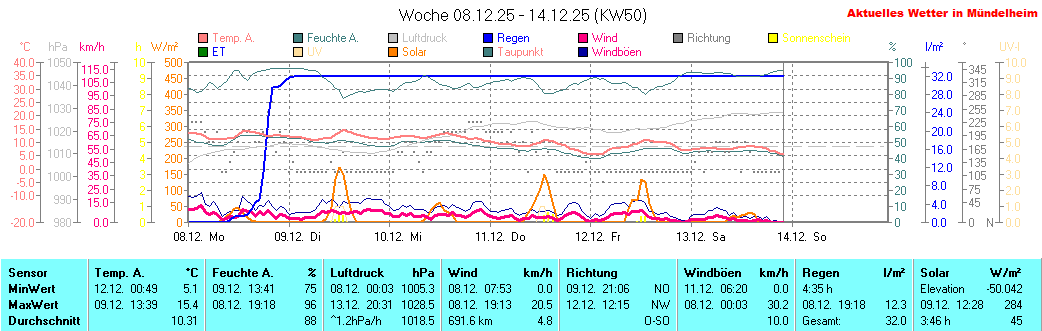 | Die dargestellten Werte repräsentieren die Daten des aktuellen Tages! Der Luftdruck ist auf Meereshöhe bezogen! |